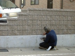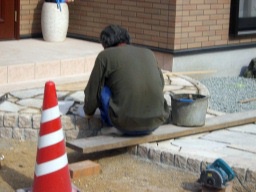 セメントを練り、一枚一枚貼ります。 |