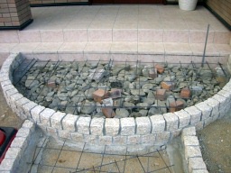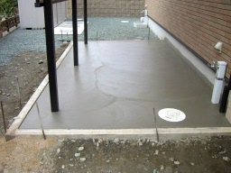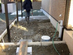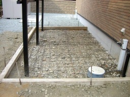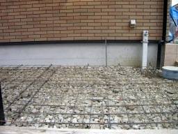アプローチの下地の厚さは、10cm〜15cmぐらい厚く打設します。 |