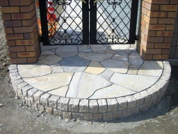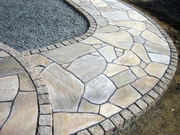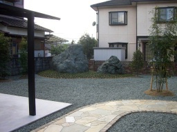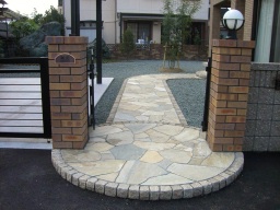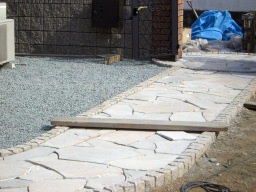 アプローチの乱型石貼りの様子です。